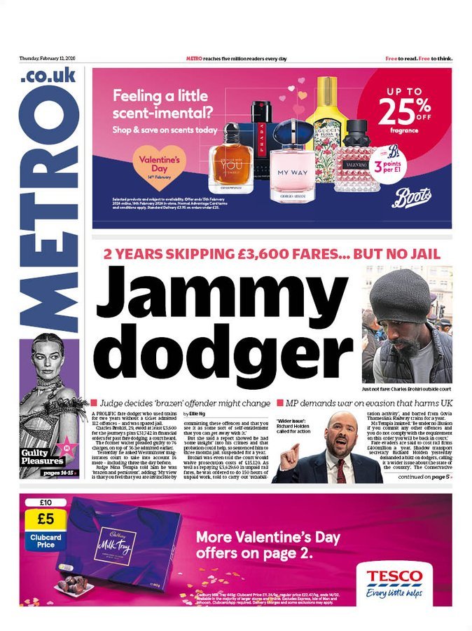 Metro Front Page 11th of February 2026
