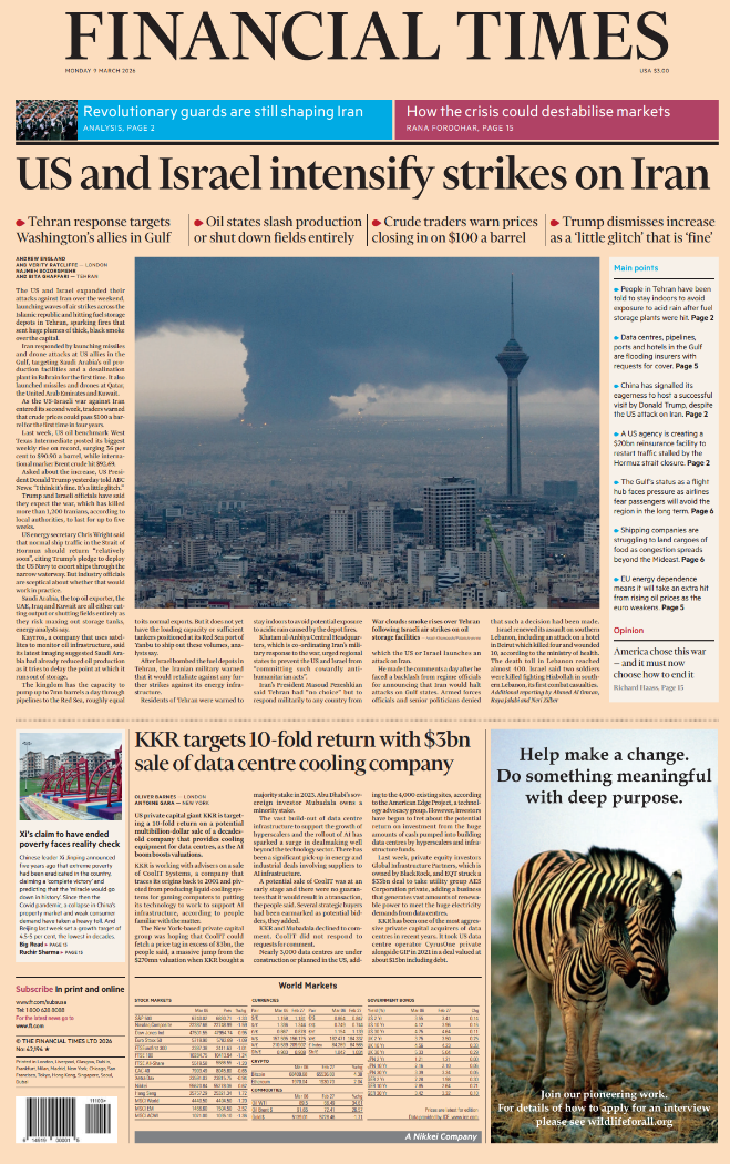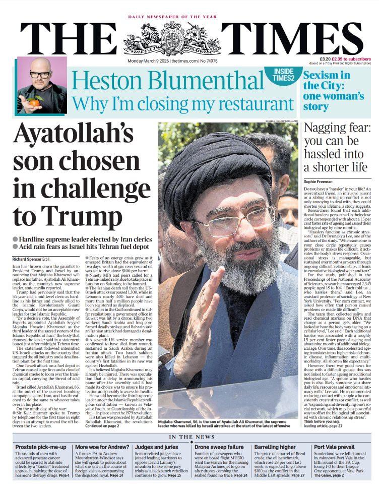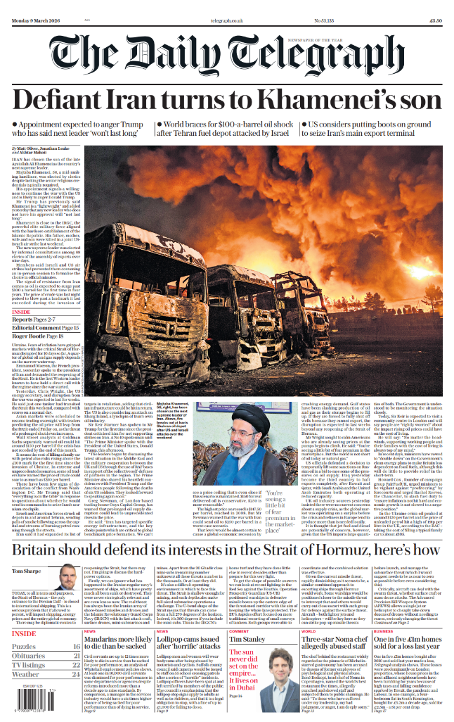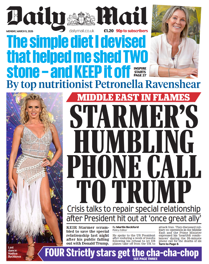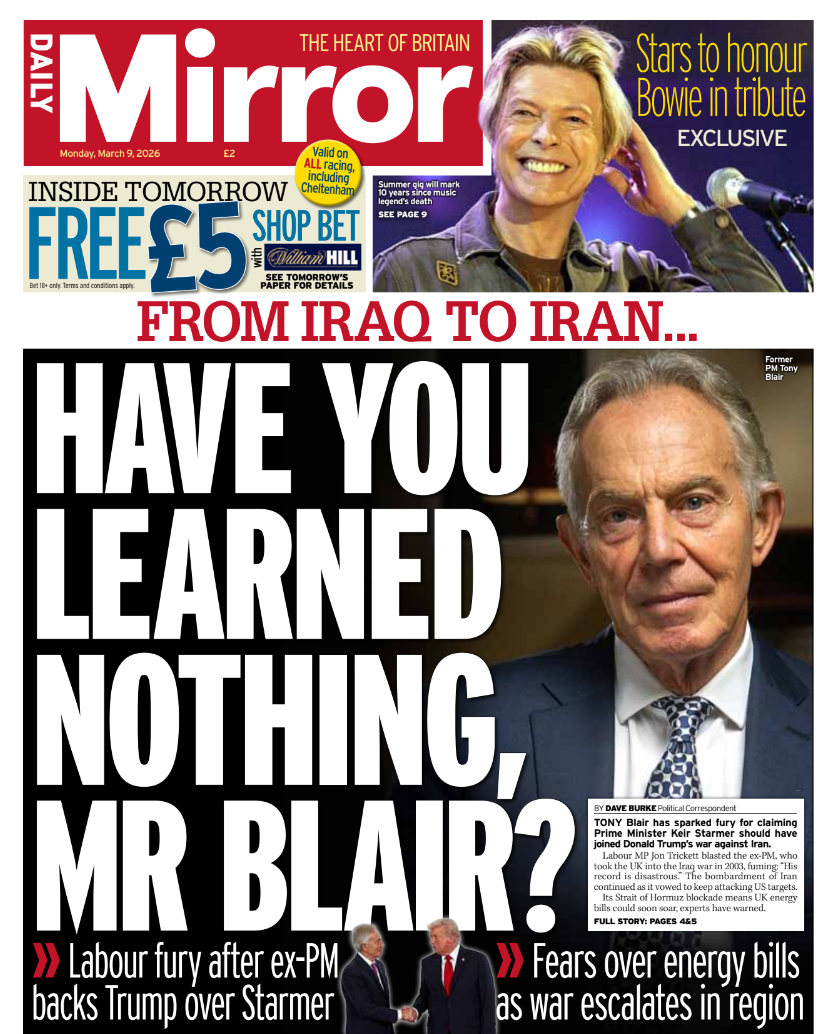 Daily Mirror Front Page 9th of March 2026