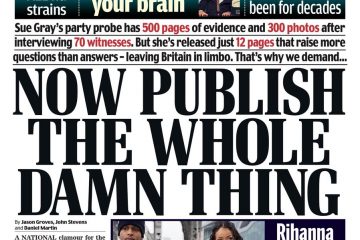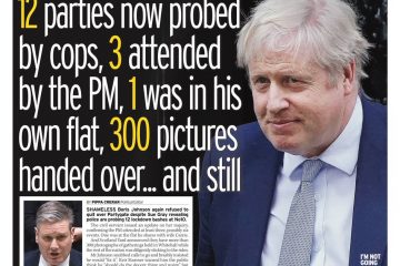 The paper leads by saying Boris Johnson has again refused to quit over partygate despite Sue Gray’s report showing police are investigating 12 lockdown gatherings at No 10.