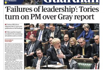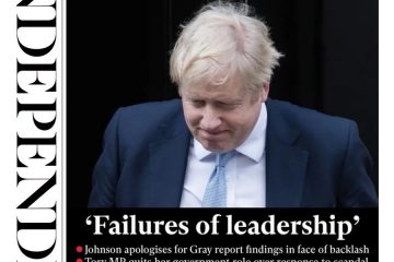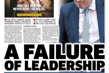 The paper highlights the verdict of Sue Gray’s report that there were “failures of leadership” in Downing Street.