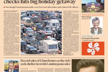 Holiday getaways are hit by the row over post-Brexit border checks, according to the Financial Times.
