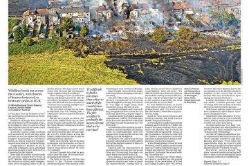 In The Daily Telegraph, the heatwave and wildfires also take center stage.