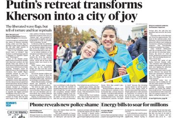 In its lead story, the Sunday Times covers the liberation of Kherson in Ukraine.