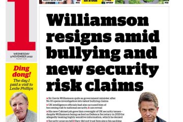 The i starts with Sir Gavin Williamson’s resignation from government over bullying claims.
