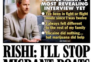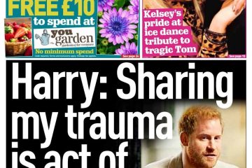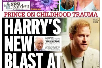 The Sunday People highlights Prince Harry, saying the “deluded prince claims he’s helping the world” by opening up about his trauma.