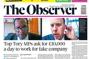 The Observer opens with a story about top Tory MPs accepting £10,000 a day to work for a fake foreign company.