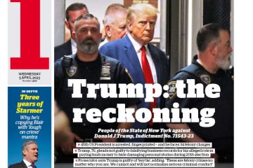 Trump’s arraignment is described as “the reckoning” in the i newspaper, which reports he plans to use that publicity in his presidential bid in 2024.