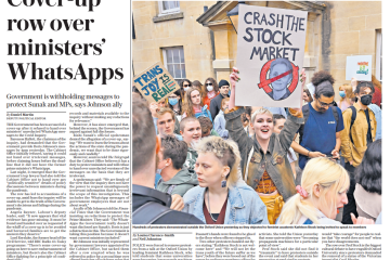 The Daily Telegraph tells of claims about a governmental cover-up linked to missing Boris Johnson’s WhatsApp messages crucial for the Covid-19 probe.