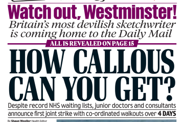 The Daily Mail reports that consultants and junior doctors will strike together for the first time, intensifying their pay dispute.