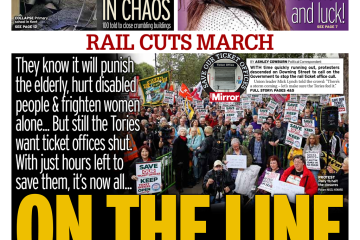 The Daily Mirror reports that demonstrators have gathered at Downing Street demanding the government halt the closure of railway ticket offices.