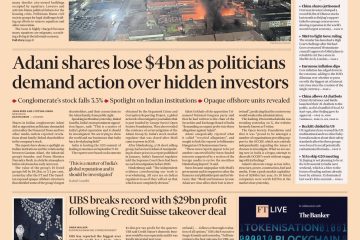 The Financial Times reports that shares in Indian conglomerate Adani dropped as opposition politicians called for action following revelations about family-linked shareholders in the company.