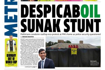 Metro covers politicians and security experts’ condemnation of Greenpeace activists who draped black fabric over Rishi Sunak’s mansion roof in North Yorkshire.