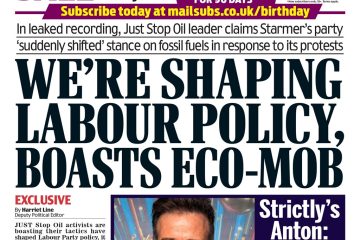 The Daily Mail’s headline focuses on Just Oil activists, who are said to have influenced Labour Party policy.