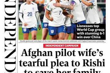 The Guardian features a picture of England’s Lauren James celebrating her goals in the Women’s World Cup.