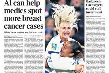 AI’s potential to assist medical professionals in identifying more breast cancer cases is the leading story in The Times.