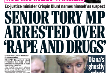 The Daily Mail reports on the arrest of ex-justice minister Crispin Blunt over alleged rape and drug crimes.