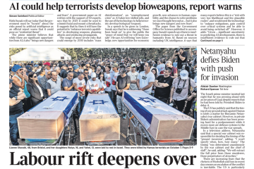 The Times reports on Sir Keir Starmer exacerbating party divisions over the Israel-Hamas conflict.