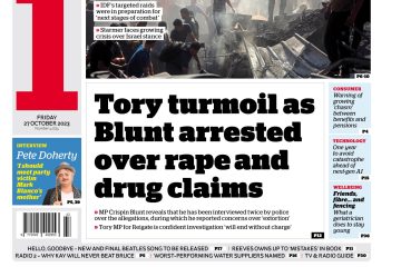 The i paper reports on the arrest of Tory MP Crispin Blunt for alleged rape and drug possession.