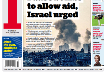 The Times highlights the plight of approximately 200 Britons stranded in Gaza seeking assistance from the Foreign Office.