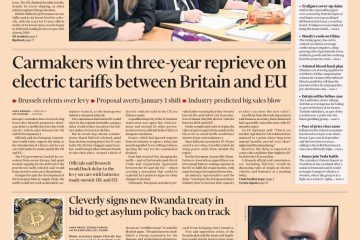 The Financial Times highlights Brussels’ proposal to postpone the electric car tariffs between the UK and EU for three years.
