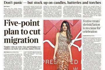 The Times highlights Home Secretary James Cleverly’s pledge for the largest ever cut in net migration.
