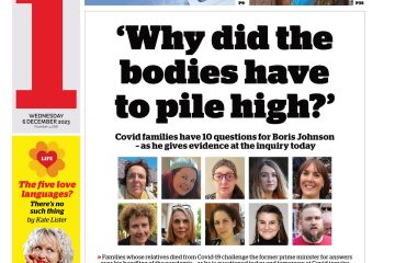 The i newspaper focuses on families bereaved by COVID-19 before Boris Johnson’s inquiry appearance.
