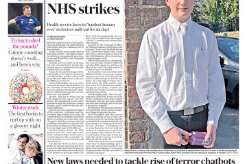 The Daily Telegraph reports a record surge in excess deaths last year, linked to NHS strikes and the ongoing pandemic.