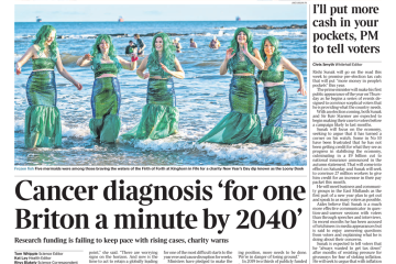 The Times reports on Cancer Research UK’s warning about the rising rate of cancer diagnoses and lagging research funding.