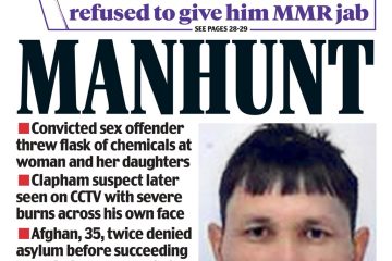 The Daily Mail reports a nationwide search for a sex offender involved in a horrific chemical attack on a mother and her two daughters.