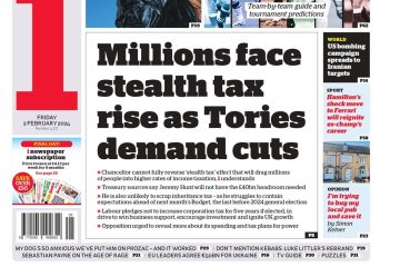 The i paper highlights a stealth tax hike impacting millions, despite Tory demands for cuts.