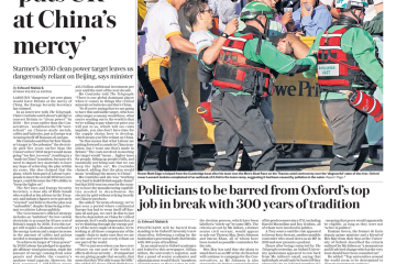 The Sunday Telegraph reports the energy security secretary’s warning about Labour’s net zero plans potentially leaving Britain vulnerable to China.