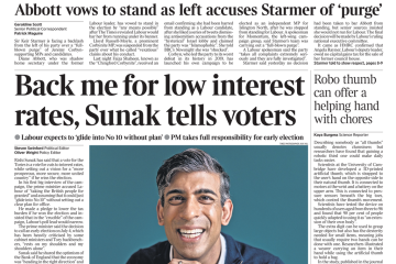 The Times reports on Rishi Sunak’s promise of reduced interest rates under a Tory government.