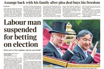 The Times reports the Westminster betting scandal has escalated with claims a cabinet minister won £2,100 betting on a July election.
