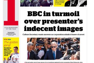 The i reports that Culture Secretary Lisa Nandy will summon BBC director-general Tim Davie over the crisis involving former presenter Huw Edwards, who has admitted to producing indecent images of children.