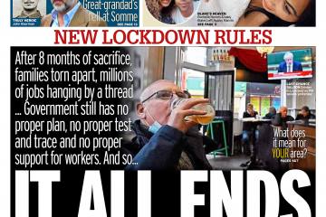 Daily Mirror Front Page 13th of October 2020