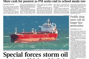 The Times says a stand-off on a tanker in the Channel began after the crew discovered seven stowaways, who then became violent.Airborne snipers were on hand to back up the SBS, who raided the vessel on Sunday evening and saved the crew in less than 10 minutes.