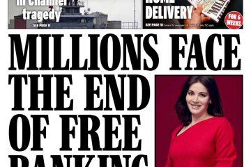Leading the Daily Express is a story about the “end of free banking” moving closer as HSBC warns of the possible introduction of monthly account charges.