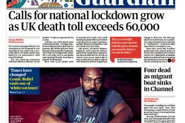 Splashed on The Guardian are calls for a second nationwide lockdown as coronavirus deaths pass 60,000.Read more on this story here.