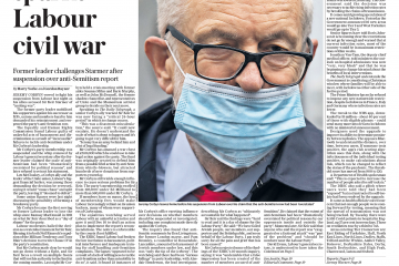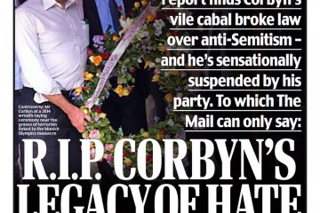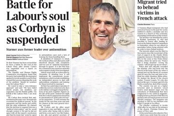 ‘Corbinned’ is the Metro’s headline on the former Labour leader’s suspension.