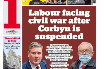The Times calls Jeremy Corbyn’s suspension and the fallout a “battle for Labours soul”.