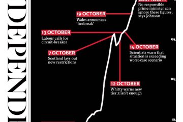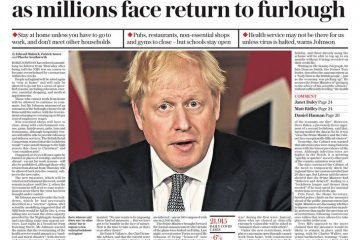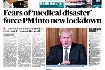 The Sunday Telegraph also leads on the month-long lockdown from Thursday, noting the prime minister’s warning about it being necessary to stop the NHS from being overwhelmed.