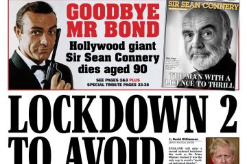 The Sunday Mirror splits its front page between the new lockdown and the death of Sir Sean Connery.