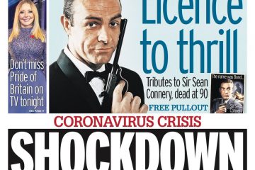 The Daily Star Sunday features Sir Sean Connery, whose family reported that he died aged 90 on Saturday.