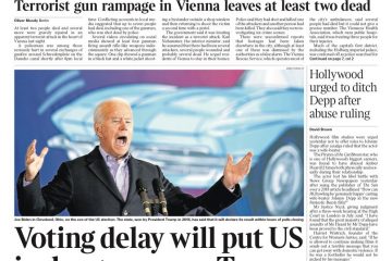 The Times leads with a warning from Donald Trump that any delay in announcing the US presidential election result could put the country in danger.Follow our US election live blog here.