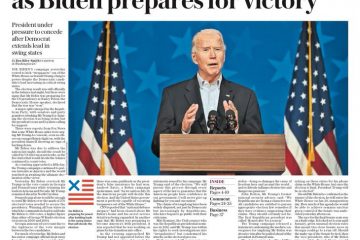 Joe Biden is “poised to become the 46th US president”, according to The Guardian, which warns Donald Trump will not admit defeat.