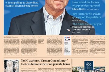 The Financial Times leads on the US presidential election, saying Democrat challenger Joe Biden is “on the brink” of victory, while President Trump repeats discredited claims of a stolen election.