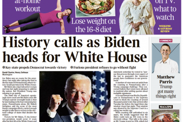 The Daily Mirror said Joe Biden was edging closer to outright victory in the US presidential election, while it was “all over” for President Trump.