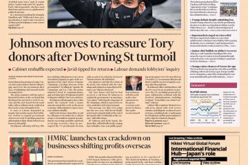 The Financial Times has a photograph of Lewis Hamilton after his Turkish Grand Prix win, as he celebrated matching Michael Schumacher’s all-time record.