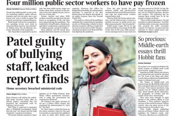 The Times leads with a report that found Home Secretary Priti Patel broke the ministerial code.