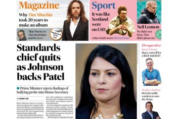 The Times says Boris Johnson has told Conservative MPs to “form a square” around Home Secretary Priti Patel, who he is standing by despite an inquiry finding her in breach of the ministerial code.